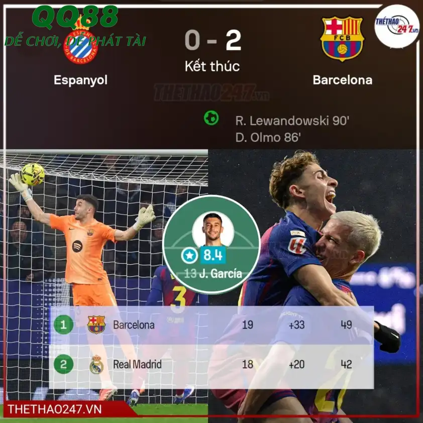 Anh em bet thủ ơi, rạng sáng nay, một trận derby xứ Catalunya nảy lửa đã diễn ra và Barcelona đã không làm chúng ta thất vọng! Chiến thắng thuyết phục 2-0 ngay trên sân của Espanyol không chỉ củng cố ngôi đầu bảng La Liga mà còn gửi một thông điệp đanh thép đến đại kình địch Real Madrid. Cùng QQ88 điểm qua những diễn biến chính và phân tích sâu hơn về màn trình diễn đỉnh cao này của Gã khổng lồ xứ Catalan nhé! Đây thực sự là một màn trình diễn đáng đồng tiền bát gạo cho những ai đã tin tưởng vào đoàn quân của HLV Hansi Flick.