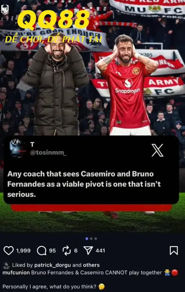 Vậy cái bài đăng mà Dorgu “thích” có nội dung “ghê gớm” đến mức nào mà lại khiến fan MU “xúm” vào chỉ trích anh chàng như vậy? Theo tìm hiểu của QQ88, bài đăng đó có câu: “Bất kỳ huấn luyện viên nào coi Casemiro và Bruno Fernandes là trụ cột khả thi đều không nghiêm túc”.