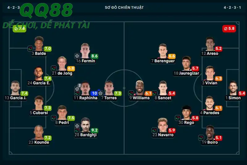 Raphinha nhận điểm 10 ở trận Barca thắng Bilbao - Ảnh: Flash score